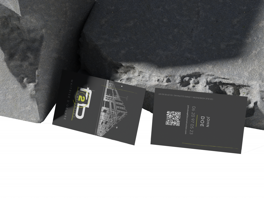 réalisation d’un design de carte de visite épuré et élégant pour mettre en avant l’expertise du cabinet de maîtrise d’œuvre f2b construction.